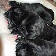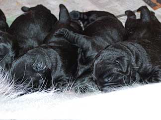 She had 9 puppies. 2 boys and 7 girls. All are black. | |||||