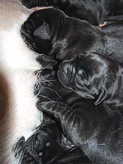 | The following text is from Guide Dogs for the Blind. | Alda's pups at 3 days old. | |||||