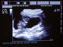 She has approximately 8 puppies inside her. This is a guess and things can change as she gets closer to her due date (Oct 30). The puppies are about an inch long. This was Alda's 5th week of pregnancy. |