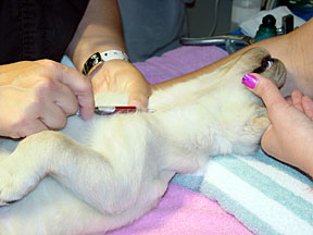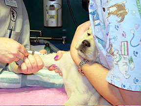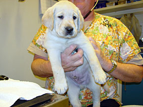 6 week checkup in the Vet Clinic before moving from the Maternity Ward to the Puppy Kennel |
