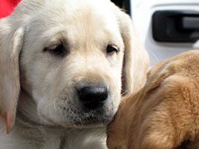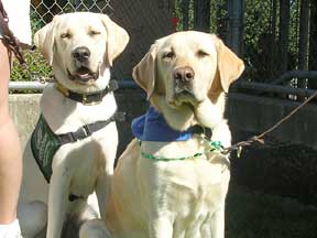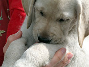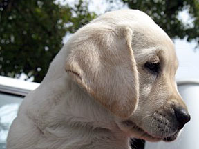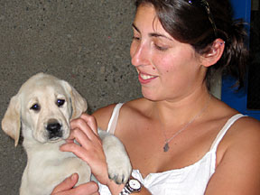 Hi, We just wanted to send you a Merav update. Unforutunately Merav has been career changed. We had recently discovered, quite by accident, that she would growl at us if we touched her or placed ourselves near her food after she started eating. We reported this and after further evaluation GDB indicated they did not want to work with this. It was very disappointing to us because she was 'on the money' in every other way and probably would have been in the October recall. She has been such a pleasure to have in our home so we have adopted her and she is enjoying life as a pet now. Could you possibly email us some higher resolution versions of some of the puppy pictures you have of her on your website? We would like to have them for her photo album. Thanks, Dave & Carol |