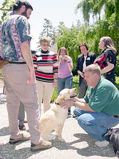 ![]() May 17, 2003 - Alda's family meets each other at GDB Graduation. Alda was presented as an addition to the Breeding Program by her raisers. Alda was raised by this team from the Contra Costa East Guide Dog Raisers. |
