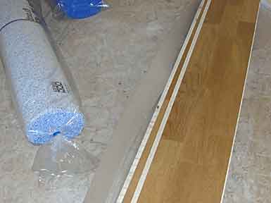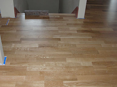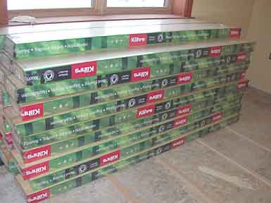 February 1, 2008 - The floor is here. We chose a "floating" engineered hardwood floor from Kahrs that is clicked together, instead of a nail down. We heat with radiant floor heating, so nailing is not recommended. Kahrs also welcomes using their product over radiant heat.
