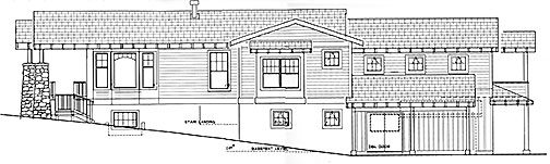 West view of house: This shows the slope of the yard to create a first floor front entrance (left side) to a two-story over the garage. There will be a full basement below the main part of the house.