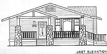 Above left: Front of the house, porch is deep enough to provide a sitting space with chairs and small table.