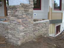Oct 3, 2007 - They have begun installing the rock on the front porch posts and base. There are 2 more posts like this one pictured. In this photo you can also see the color choices. The house will be the tan brown, belly band is a dark green, trim is a light green. The windows are a rusty red.