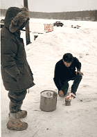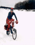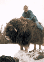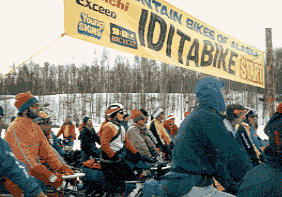 Gary raced in the Iditabike and I was a race official. The bike race started a day after the Iditarod Dog Sled race. During the start of the dog race, I got a chance to meet with Libby Riddles, previous winner of the race. I spent most of my time at Knik Lake Bar or in motor home in the parking lot. Dinner never got hot enough, but the bar offer to heat the stew in their kitchen. The stuffed yak was in the race director's garage and made a funny photo.