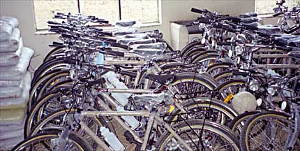 There is one new building that is storing 30 new mountain bicycles donated by the British government. The mountain bicycles are for the staff to use to travel to remote villages. The room also served as a meeting place.
