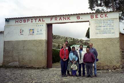 Nat is standing in the middle again, holding a copy of the original that we gave the clinic. Nat's father and mother were Methodist Missionaries after Dr. & Mrs. Beck had retired back in the States. Nat stayed in Bolivia and is the director of Andean Rural Health Care.